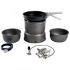 Le réchaud Flash Carbon de la marque Jetboil est parfait pour le trekking ou le camping. Il a une capacité d’un litre, ce qui permet de préparer facilement toutes sortes d’aliments. Il fait bouillir un demi-litre d’eau en seulement 100 secondes. L’indicateur de chauffe sur le côté change de couleur lorsque l’eau est assez chaude. Il suffit d’appuyer sur un bouton pour mettre le réchaud en route. Grâce à son design spécial, il est très performant. En effet, il peut faire bouillir jusqu’à dix litres d’eau avec une cartouche de 100 grammes.